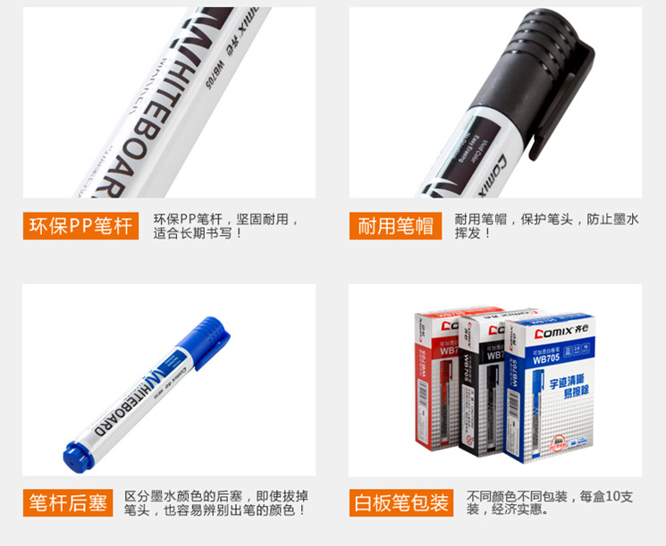 产品名称:齐心WB705 可加墨办公水性易可擦白板笔